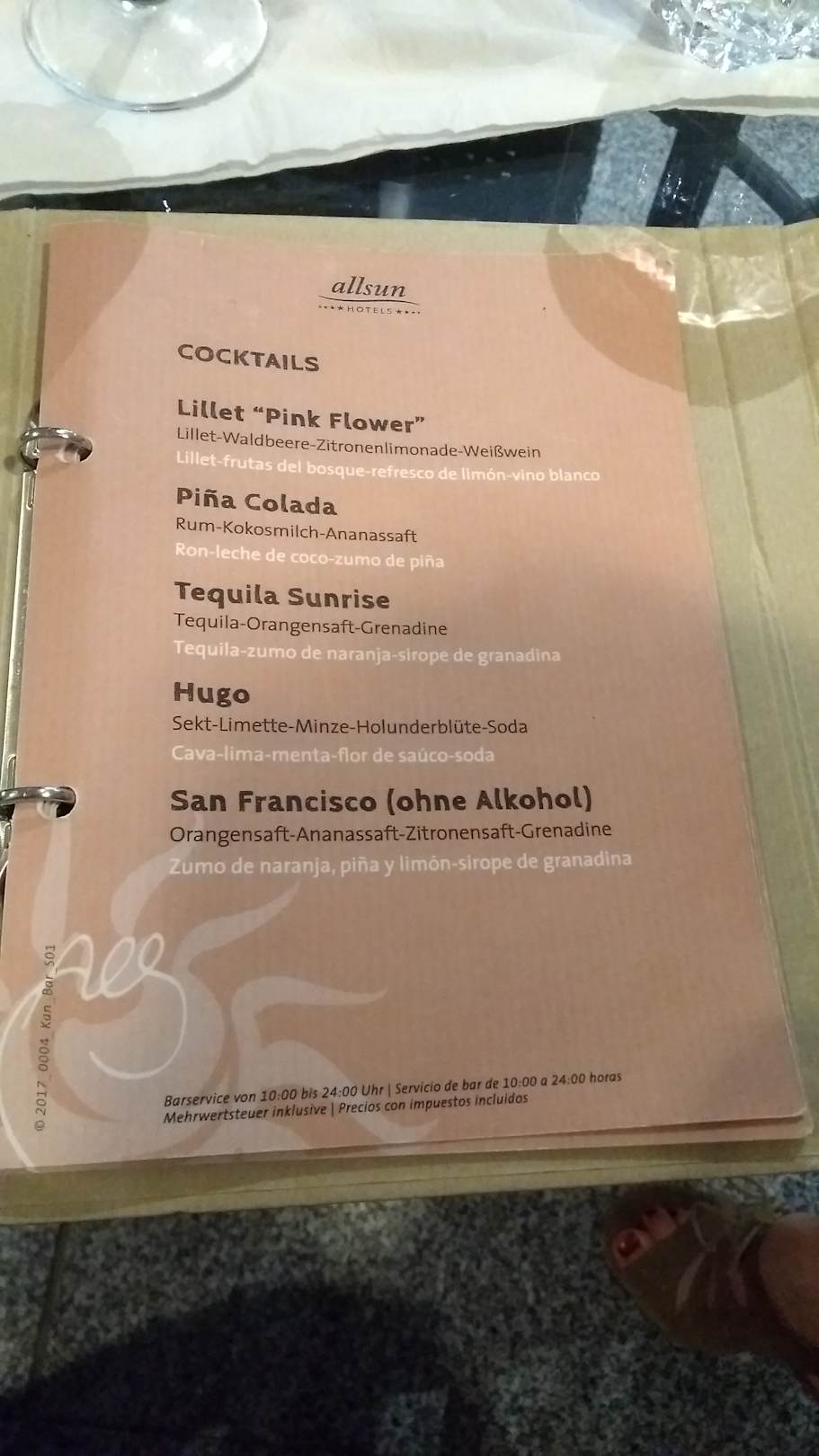 Getränkekarte an der Bar Preise1