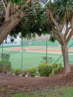 Blick vom Weg auf die Tennisplätze