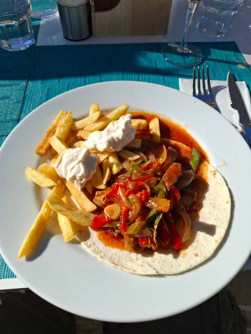 Fajitas, dazu Pommes und Majo