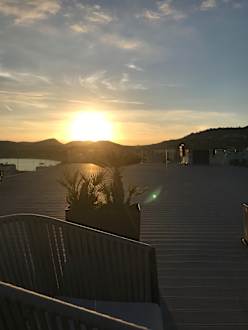 Blick von der Dachterrasse in den abendlichen Himmel