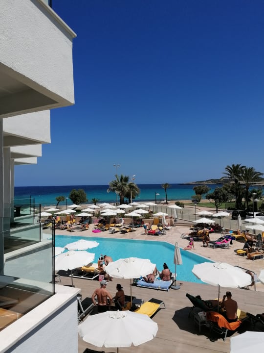 Blick vom Zimmer über den Pool Richtung Meer 🏝