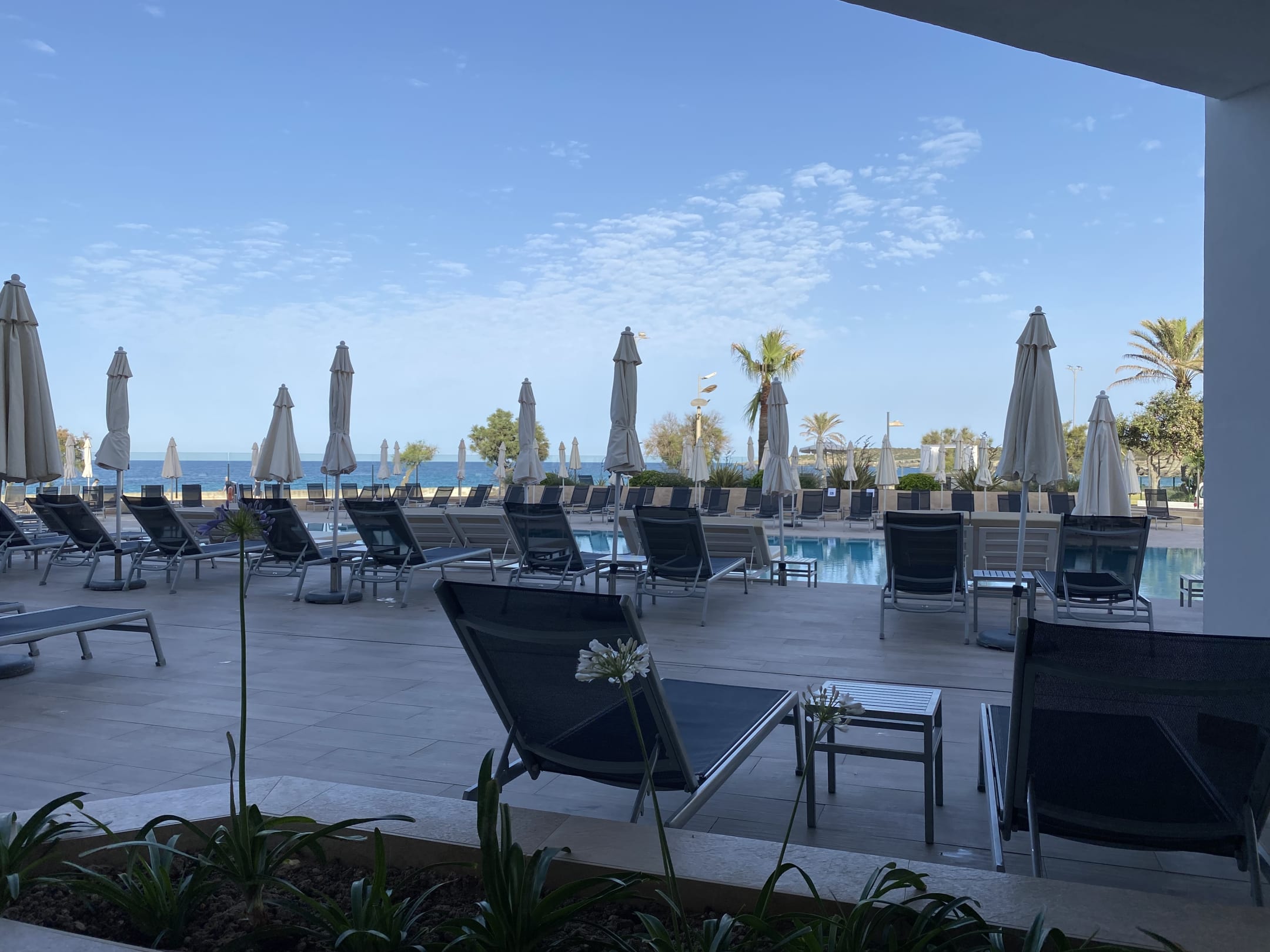 Der Pool am Abend (von der Außenterrasse aus fotografiert.