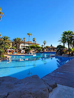 Poolanlage am frühen Morgen