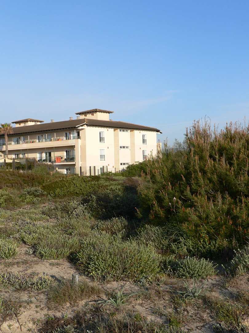 Blick vom Strand zum Hotel