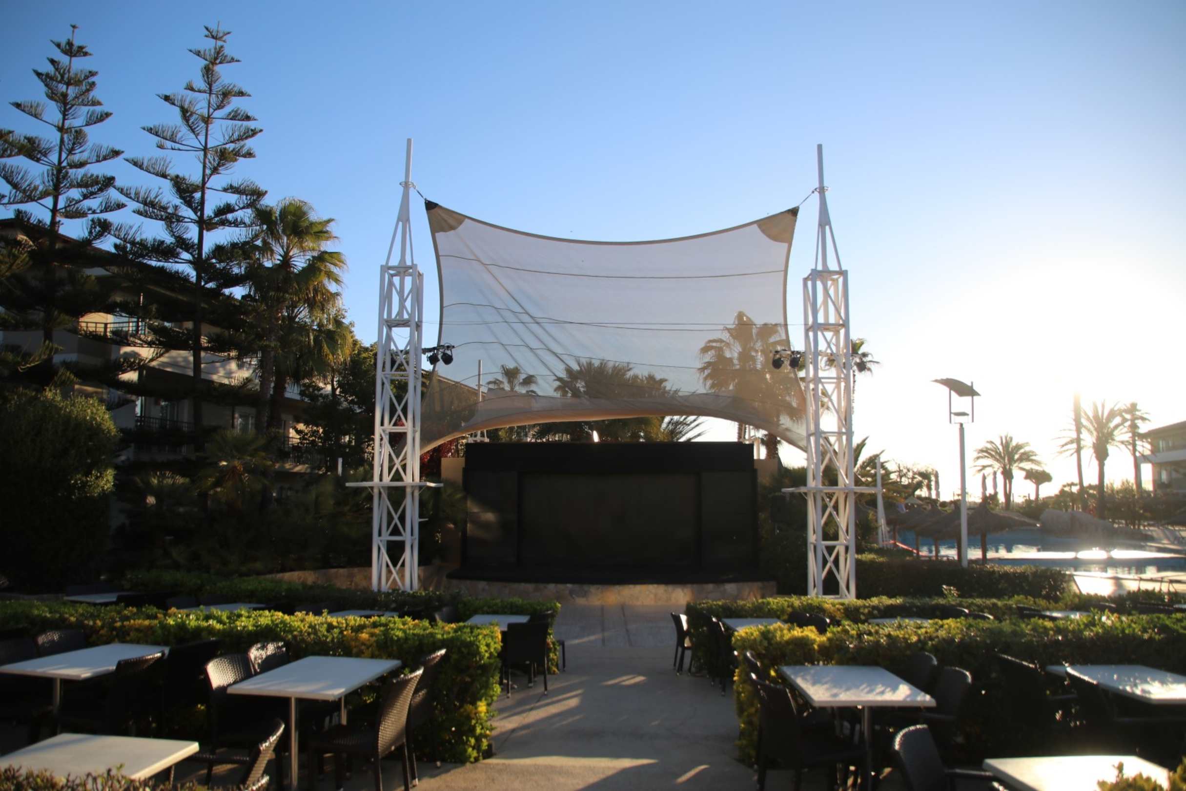 Showbühne mit einigen der Sitzgelegenheiten