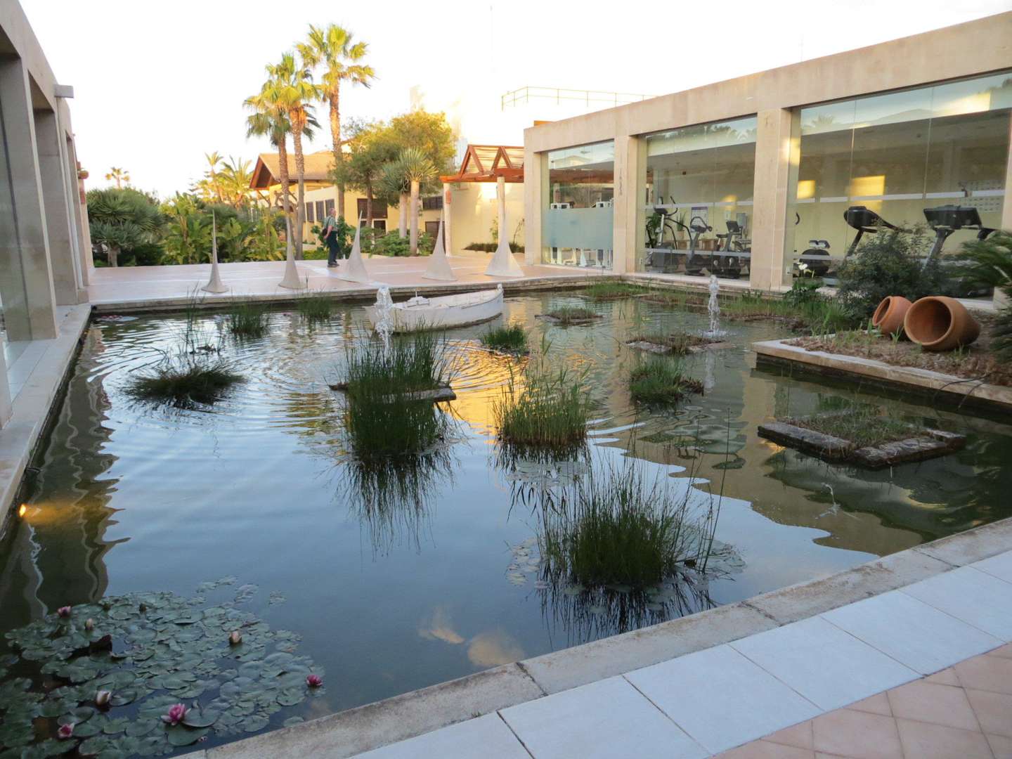 Hotel-Teich zw. Lobby und Fitnessraum