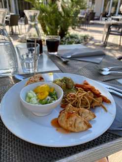 GastroAsiatisches Motto: Gyoza, Poke-Bowl mit Quinoa, gebratene Nudeln, grünes Curry, Bagel mit Guacamole und Huhn und Süßkartoffel.