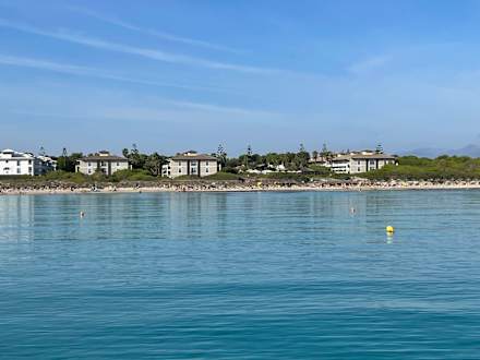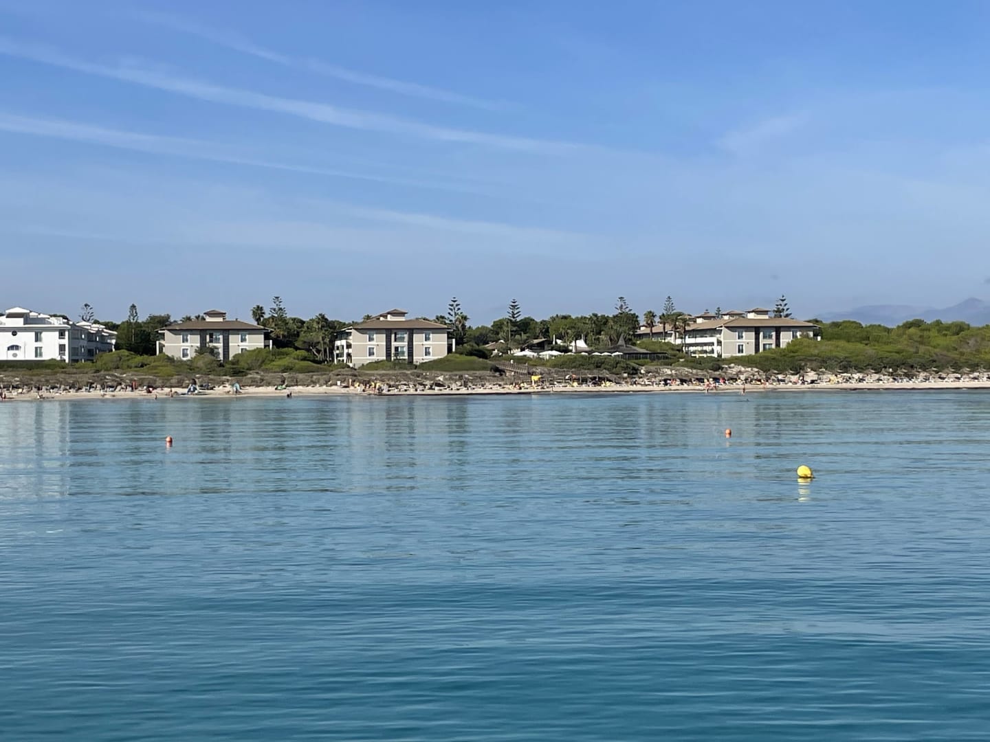 Blick vom Ausflugsboot auf die drei Häuserreihen des Eden Playa