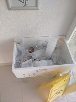 SonstigesEs gab kaum Aschenbecher und es wurden die Gläser benutzt. Gäste rauchten überall in der Anlage und im Innenbereich auch gevipet.