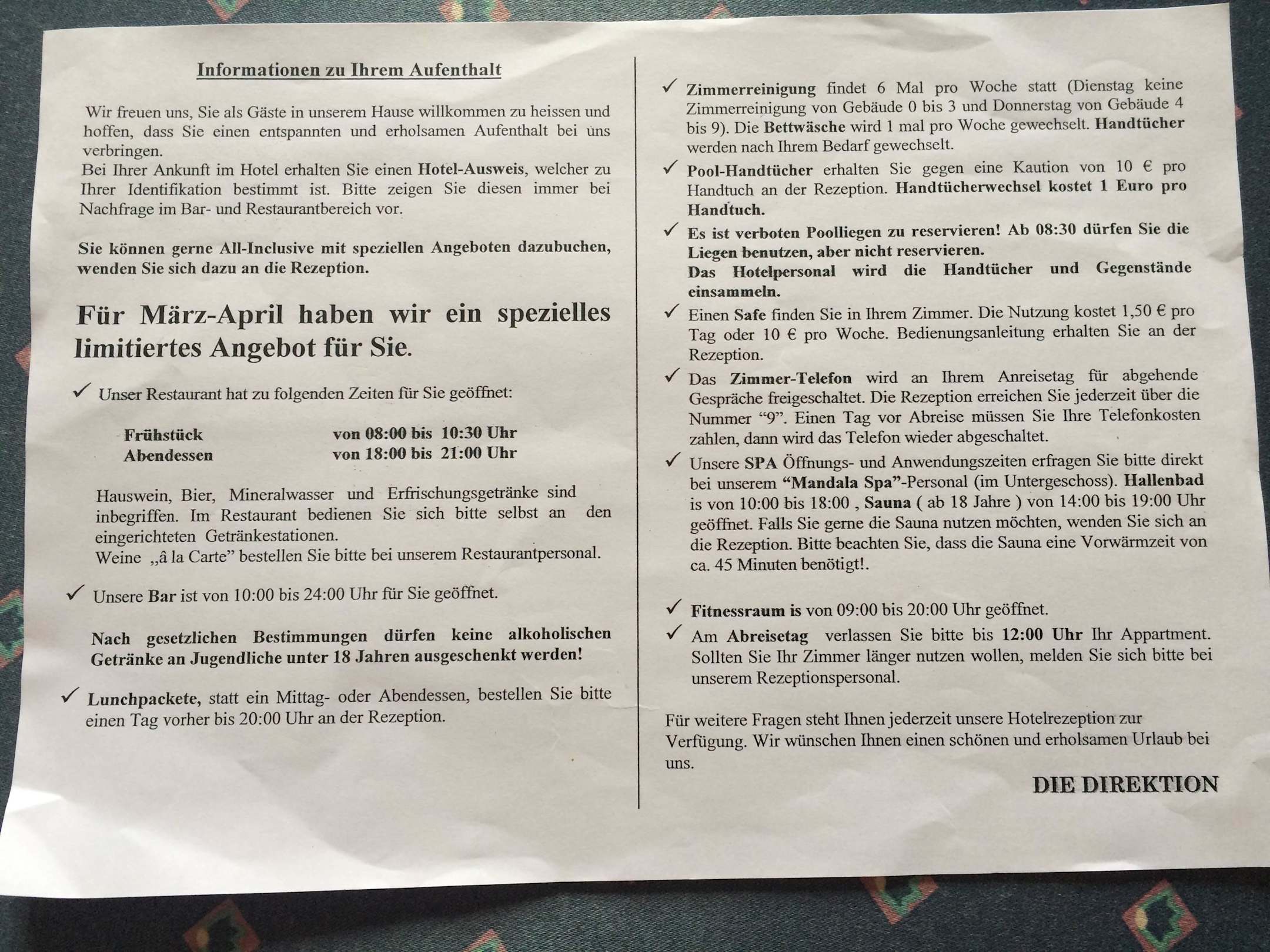 Infos Hotel