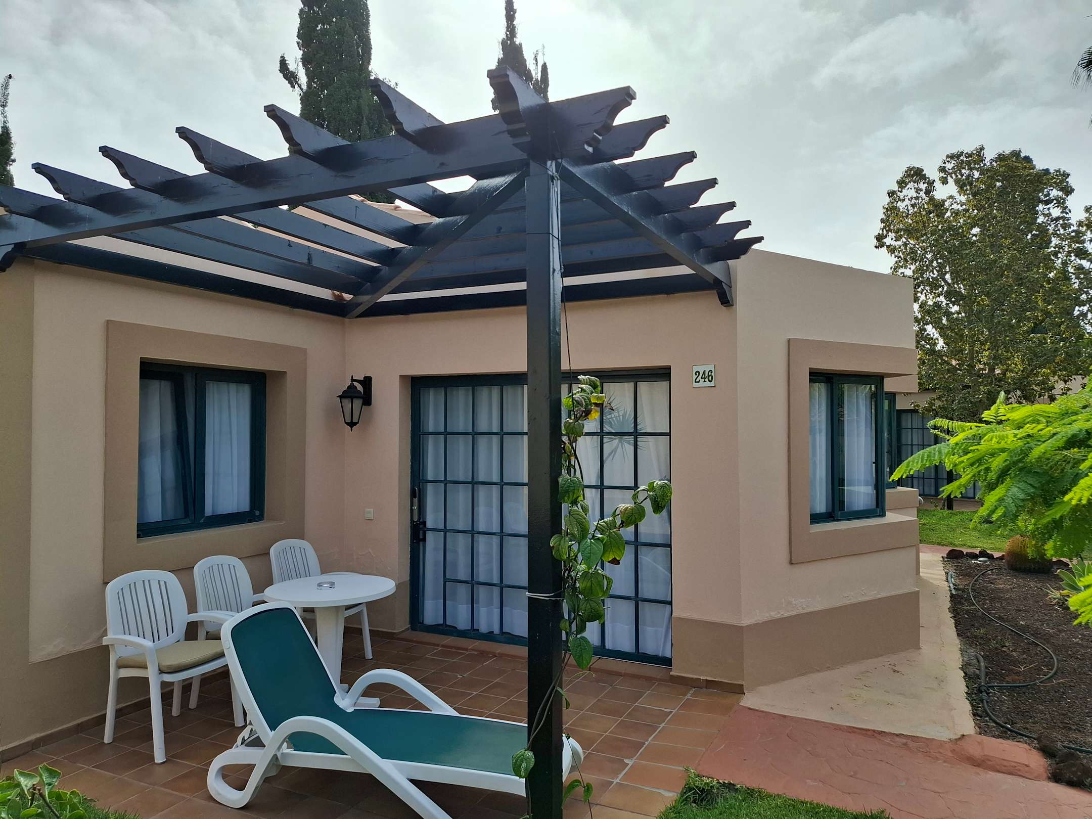 unser Bungalow 246, Sonne auf der Terrasse