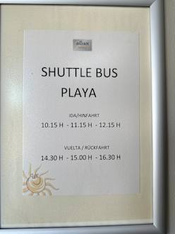 Shuttle Bus Zeiten. Die Strandliegen kann man bis 17:00 Uhr nutzen, will man den Bus nehmen muss man bereits um 16:10 Uhr einpacken. Zum Bus läuft man auch noch etwas