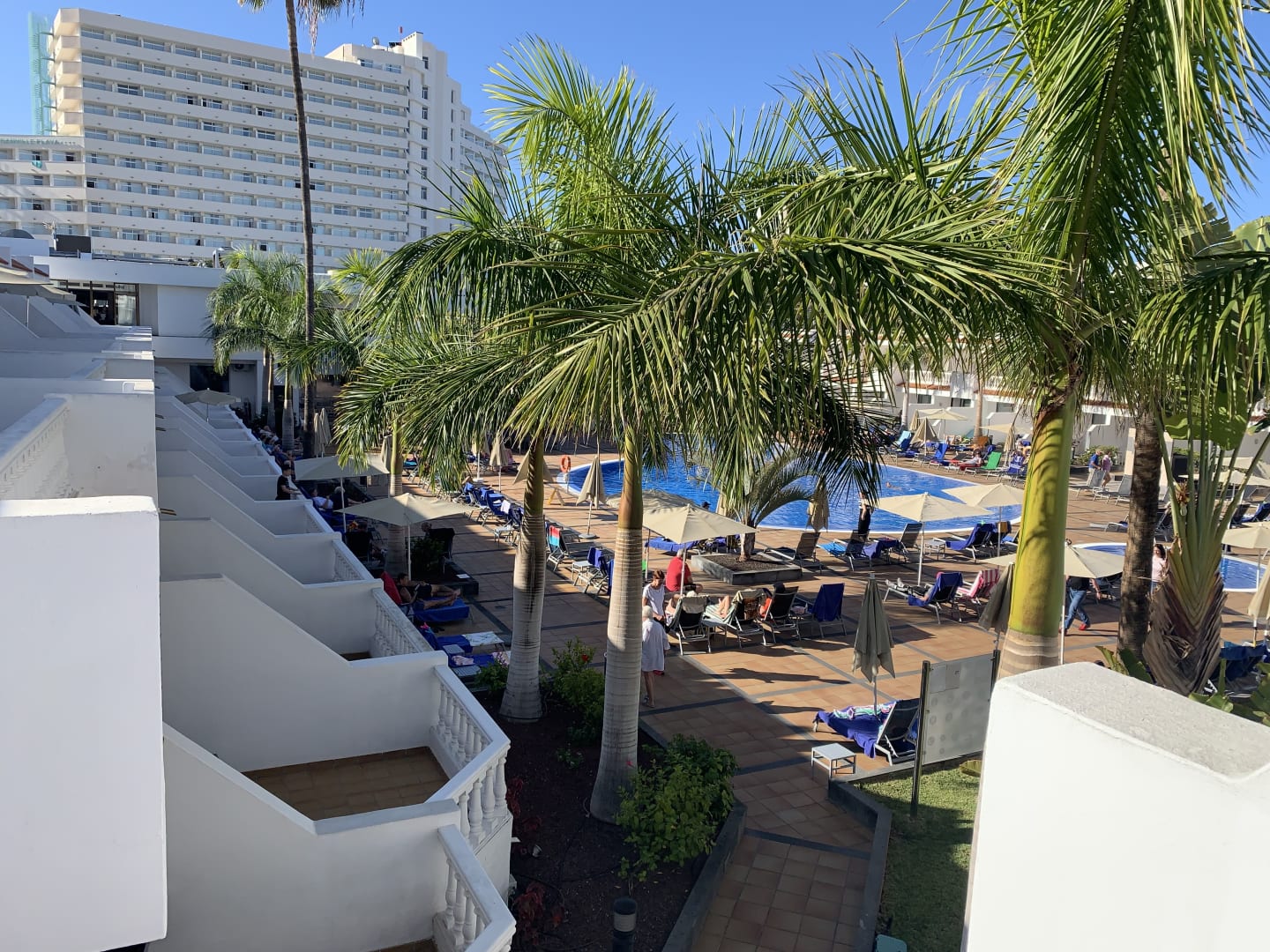 Ausblick vom Zimmergang auf den Innenpool