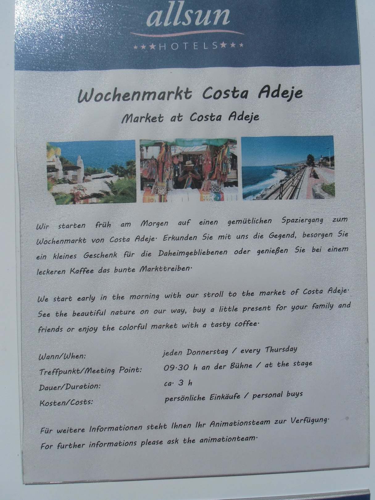 WochenmarktDie Tour wird vom Animationsteam angeboten. Der Markt ist eine Anreihung von kleinen Plastikmarktständen wo das Übliche angeboten wird.