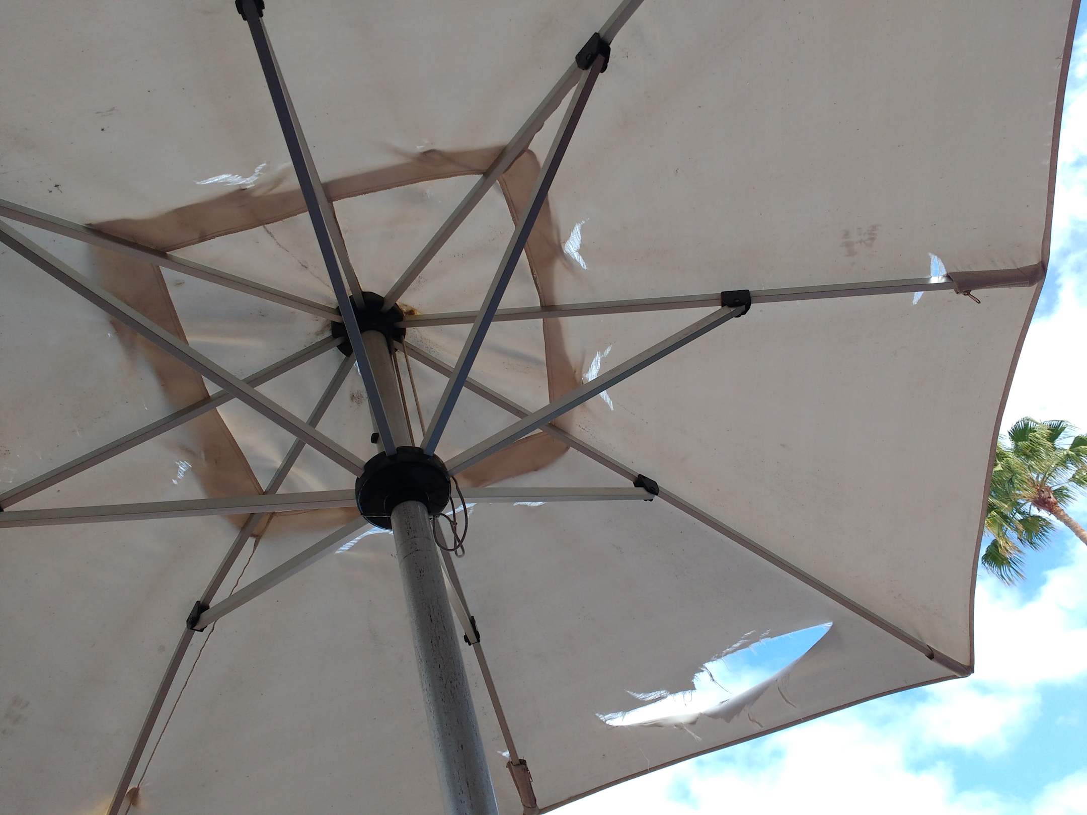 Dieser Sonnenschirm hat seine besten Zeiten hinter sich