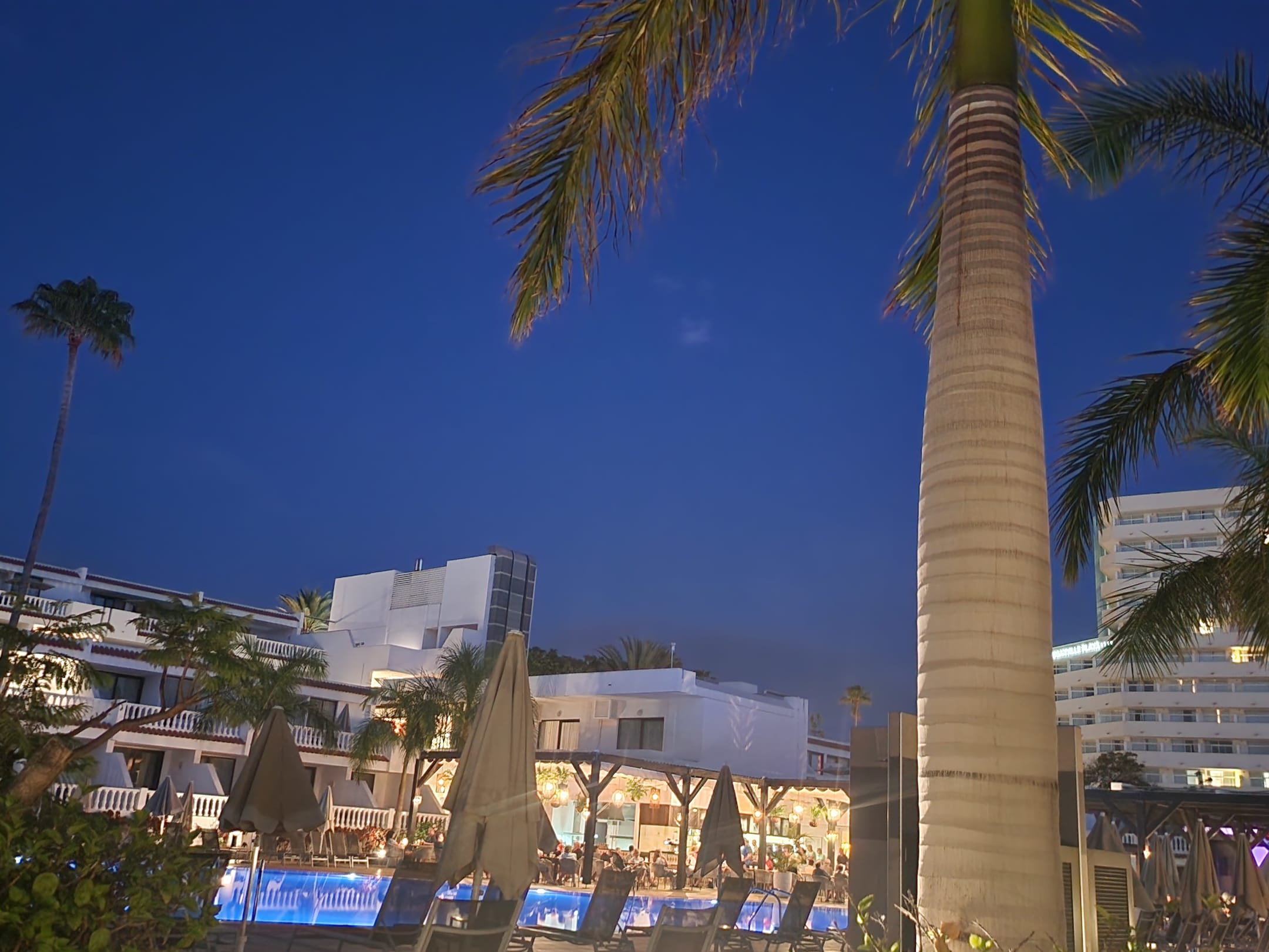 Abends pool und sicht auf aussensitzbereich