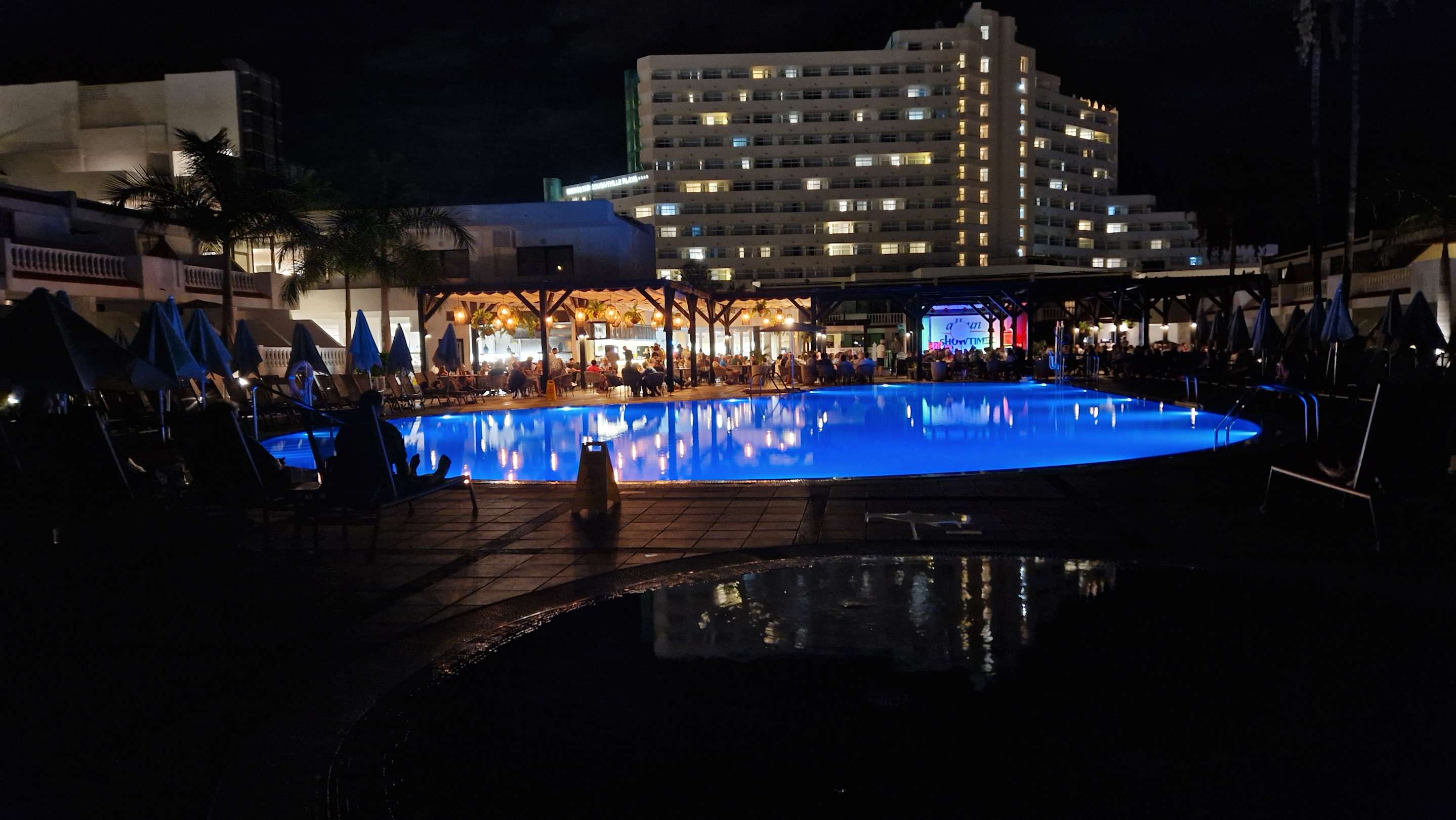 Blick auf Pool und Gastronomie