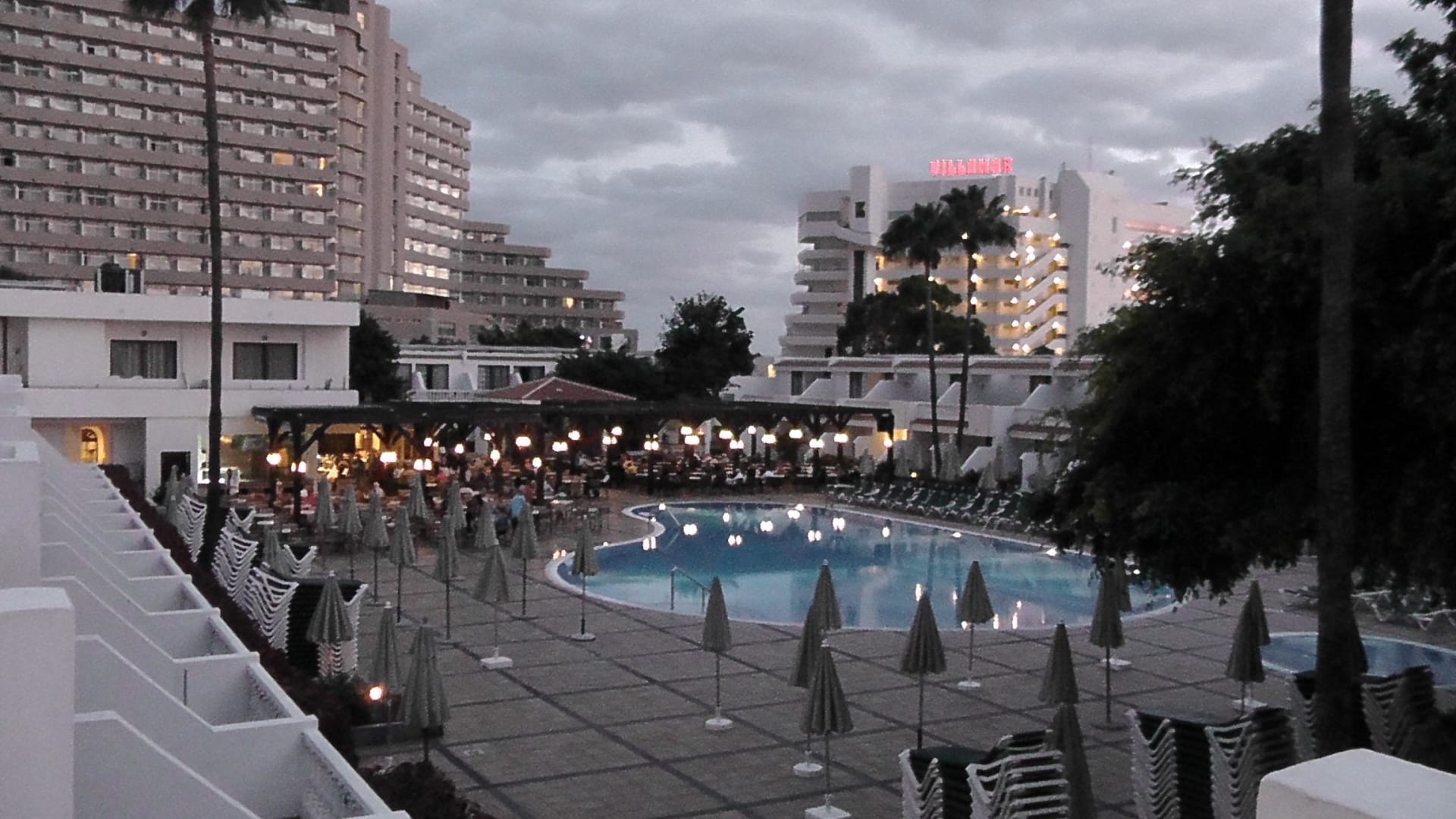 Pool und Bar am Abend