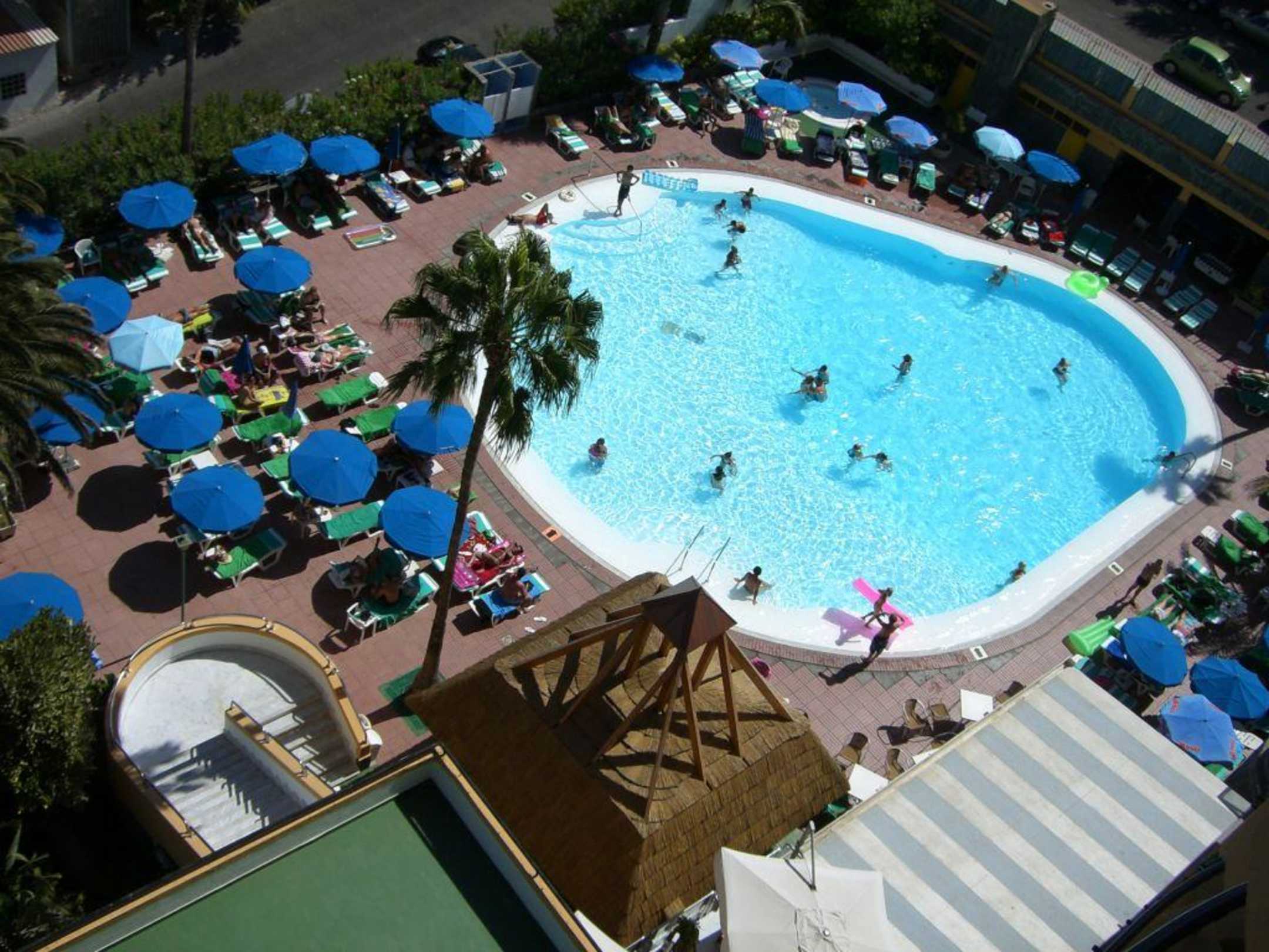 Ausblick vom Balkon auf den Pool