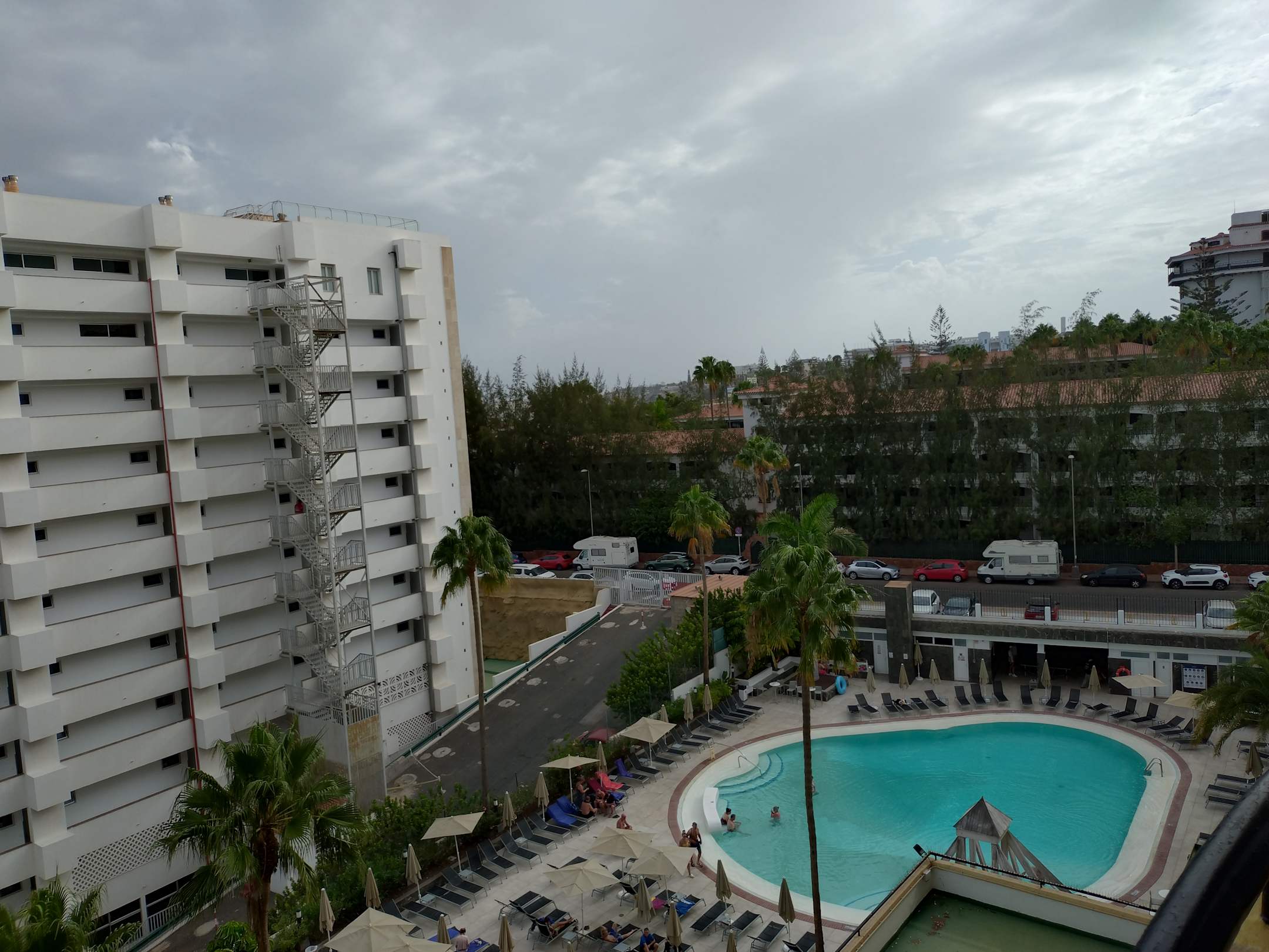 Blick vom Balkon auf den Aktionspool