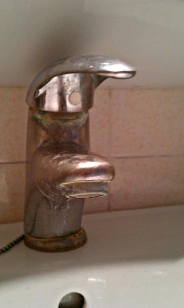 So sah unser Wasserhahn aus als wir unser Zimmer bezogen haben. Und er wurde im Laufe der Woche auch nicht vernünftig gereinigt.