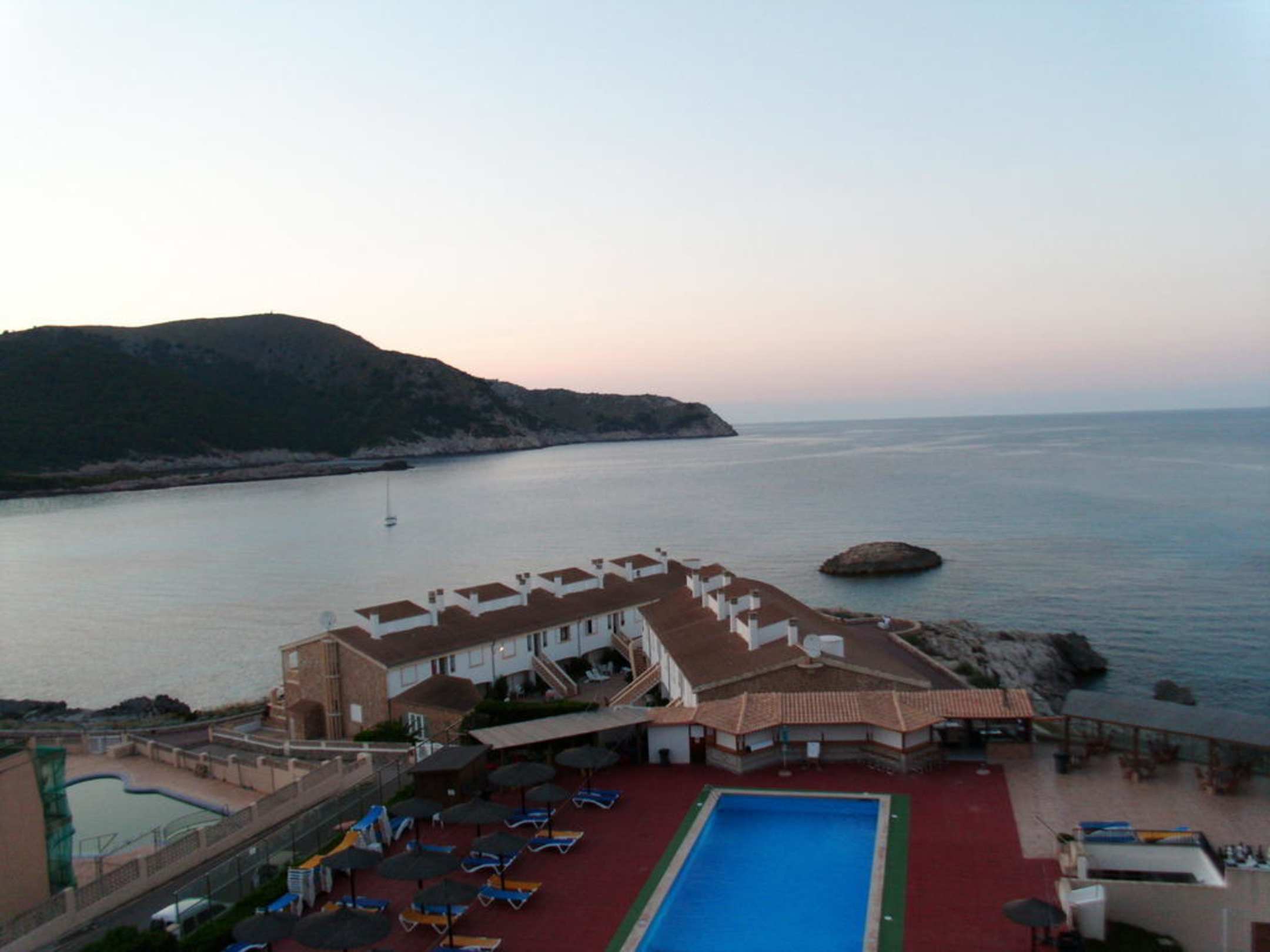 Abendausblick vom Balkon auf Pool uns Meer