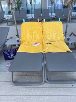 Liegen mit Poolhandtücher, die man für je 10€ Kaution leihen kann.