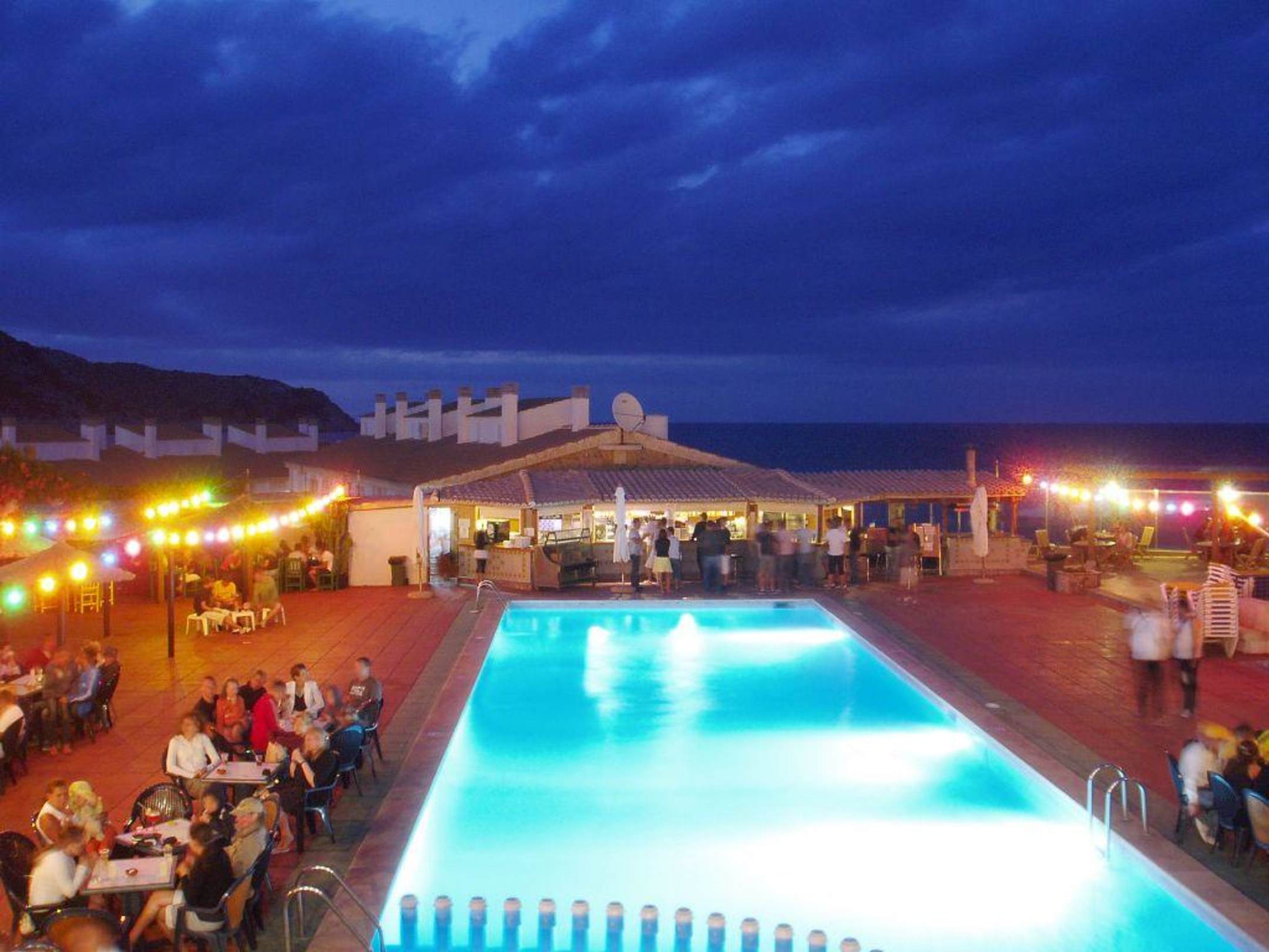 Blick auf den Pool bei Nacht