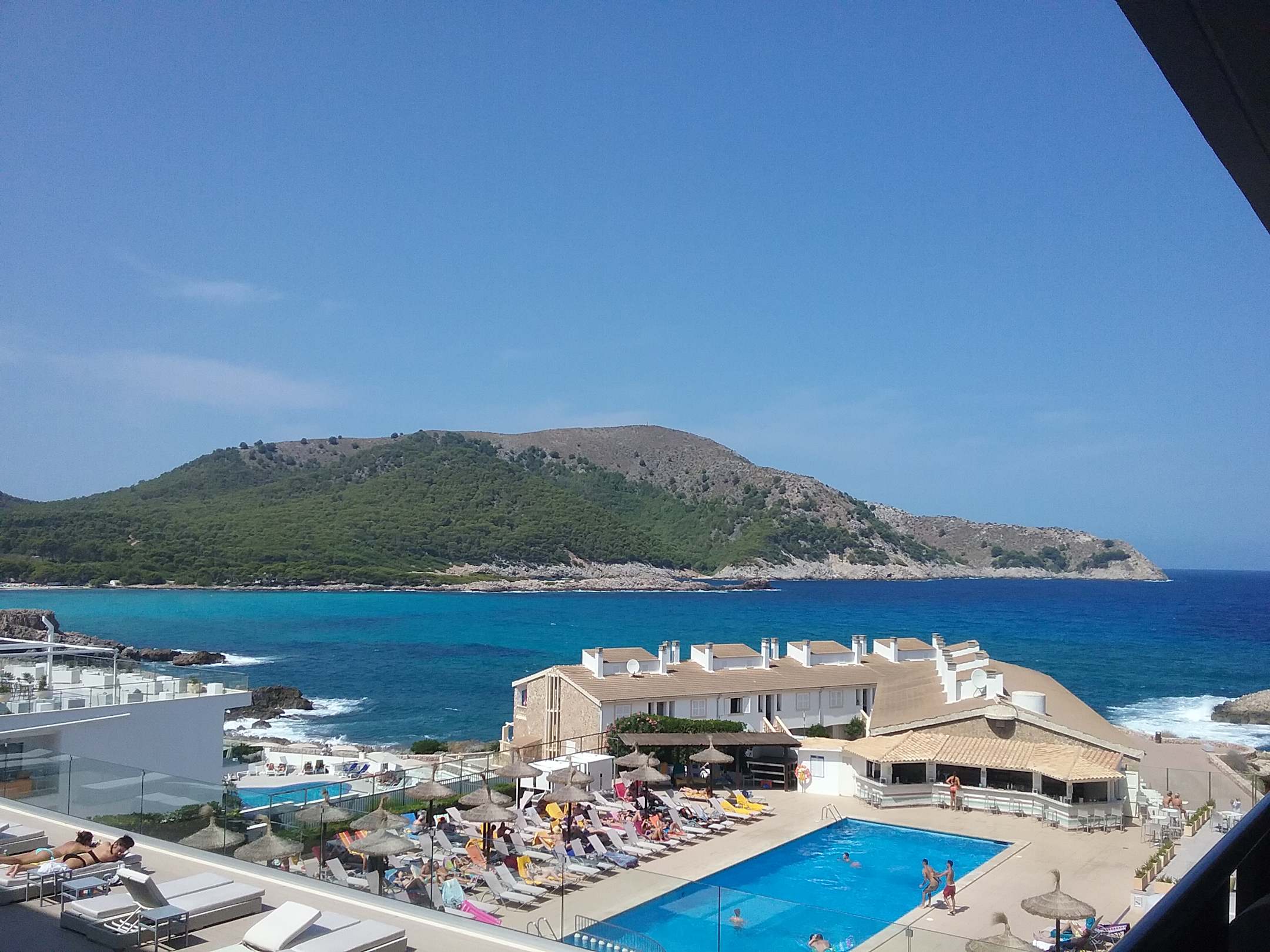 Toller Ausblick auf den Poolbereich und Meer vom Balkon