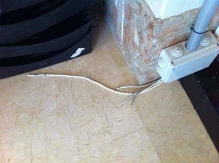 Lebensgefahr für Kinderoffene elektrische Leitungen auf dem Boden