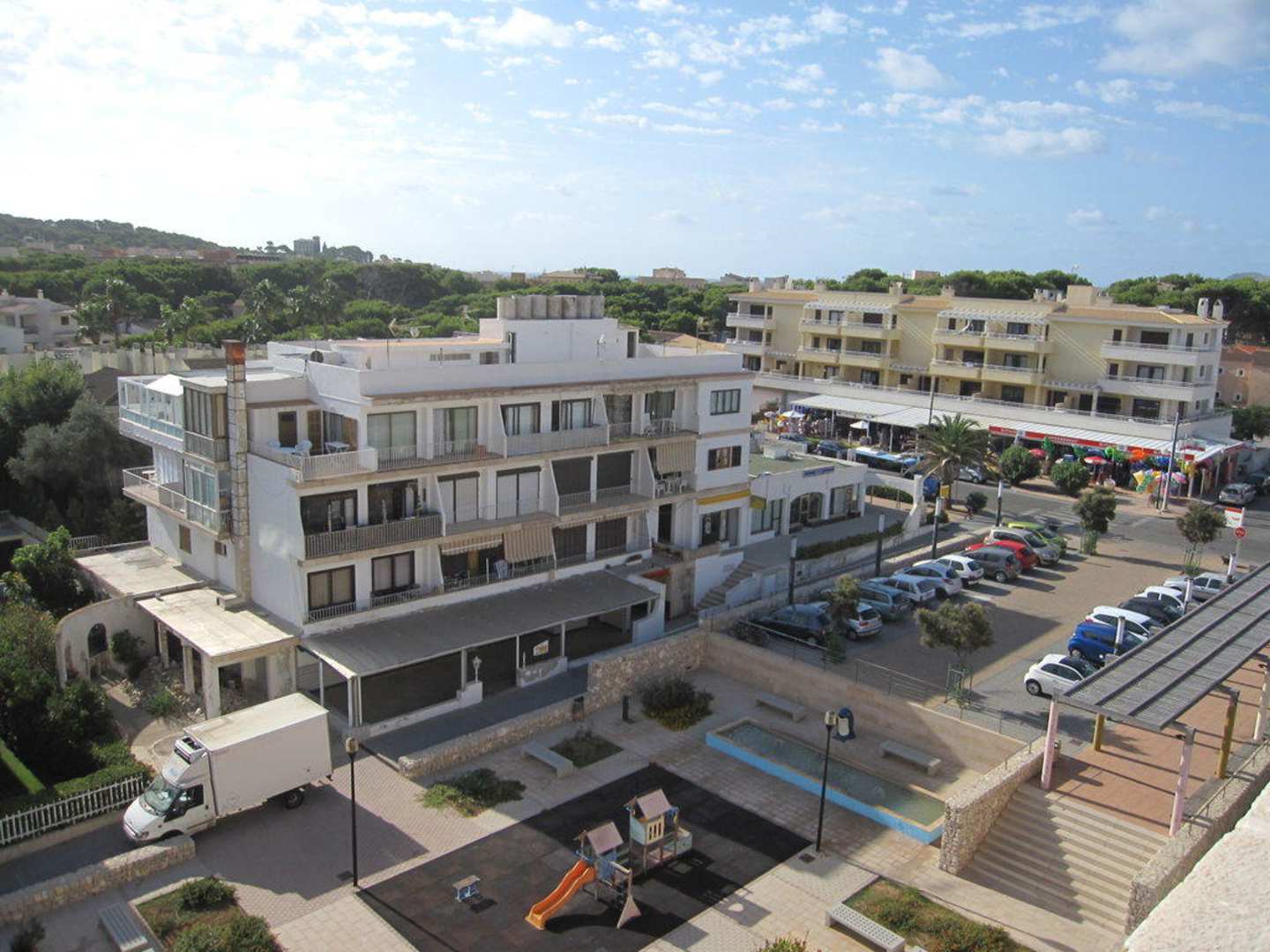 Ausblick vom 6. Stock auf öffentlichen Spielplatz