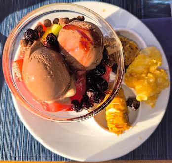Nachtisch vom Obst-Buffet und aus der griechischen Ecke