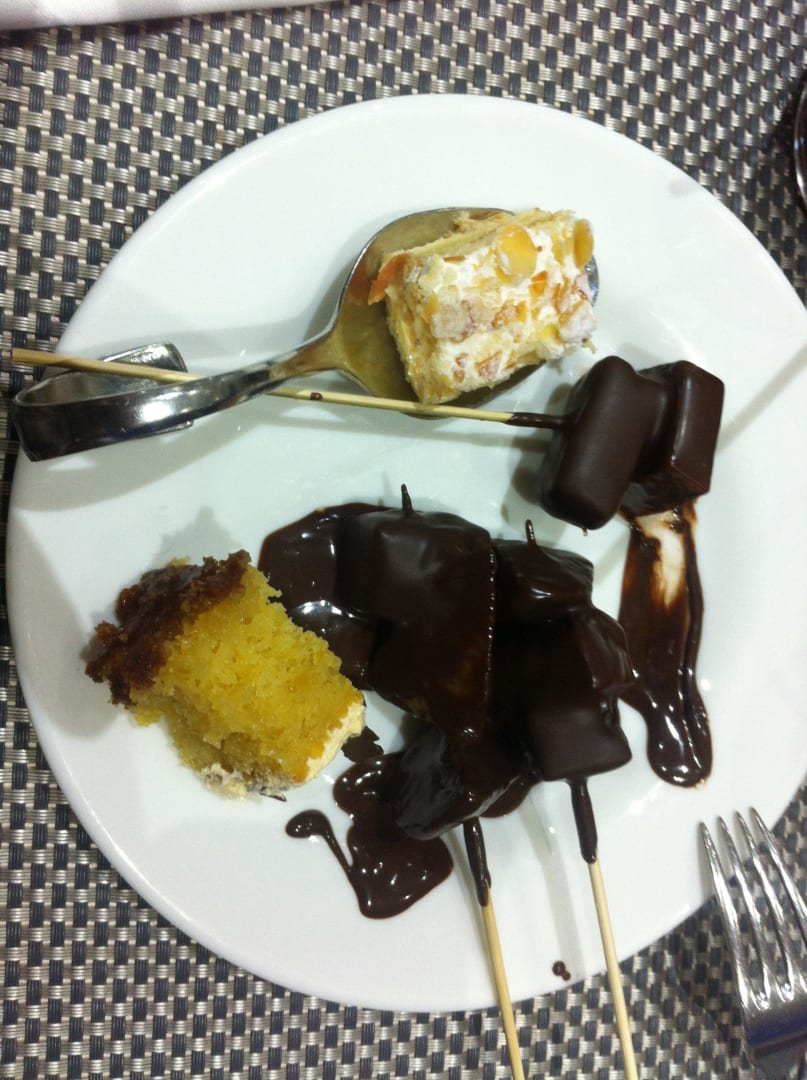 Desserauswahl (Abends) Schokobrunnen aufgebaut
