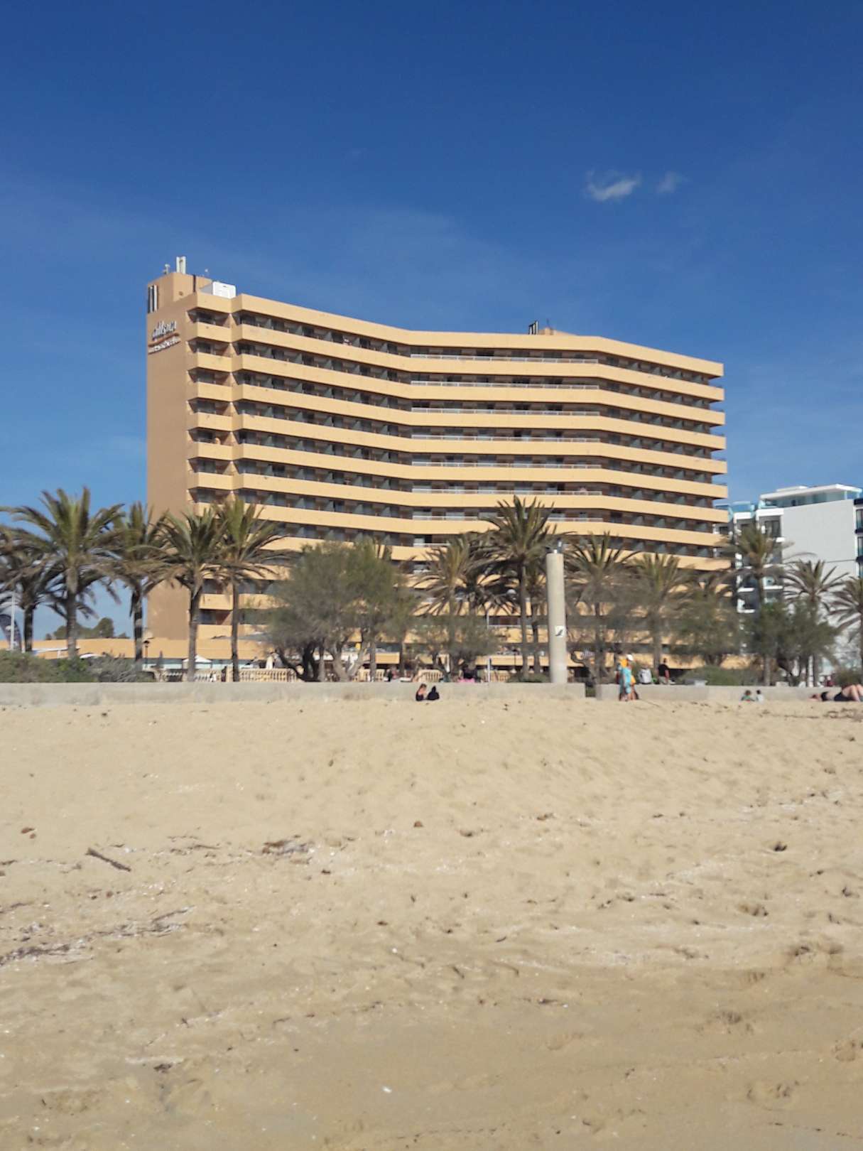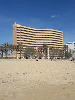 Blick vom Strand auf das Hotel