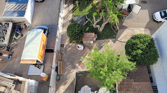 Rückaussicht auf Ladehof Eigen- und Nachbarhotel v. Balkon/normale DZ