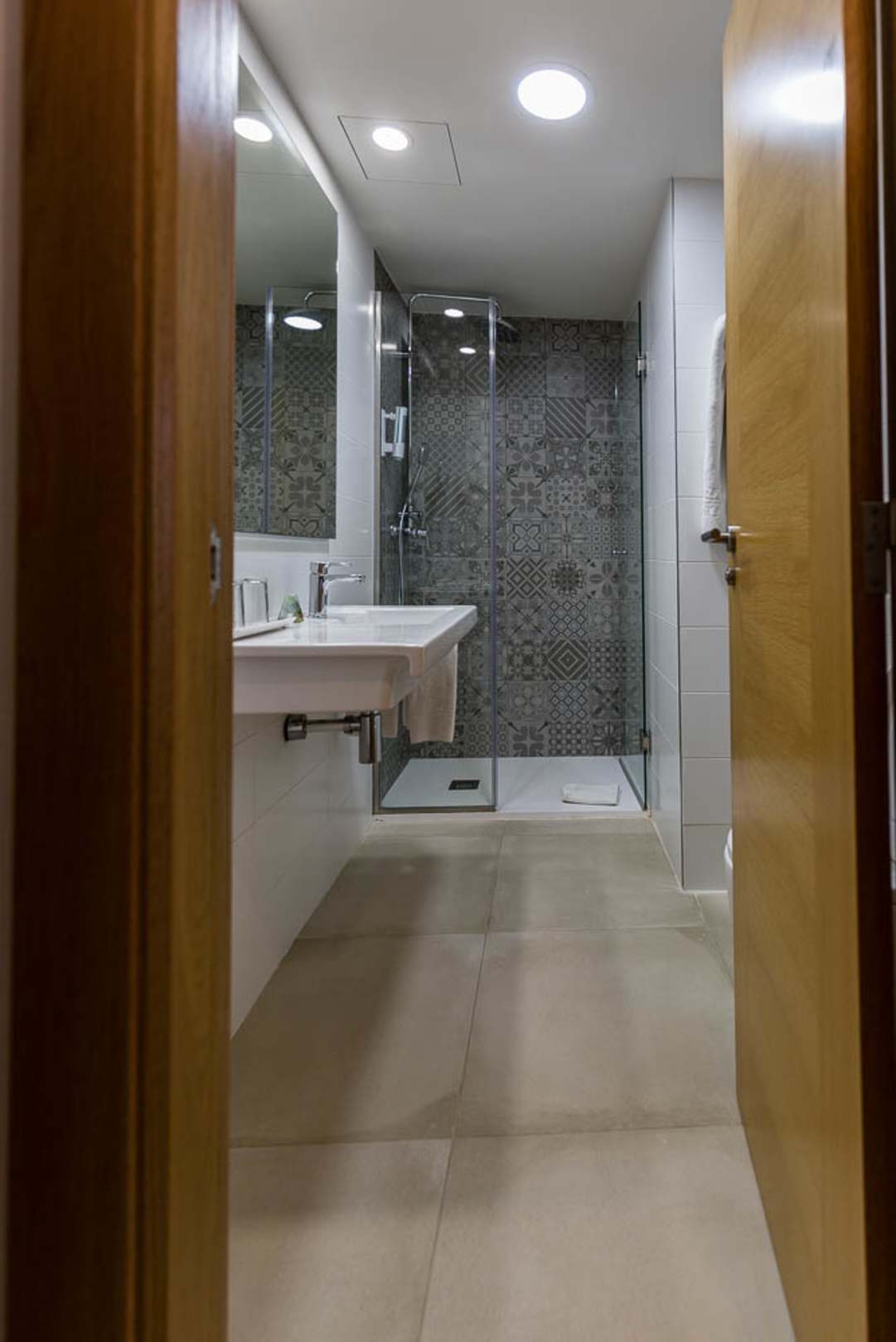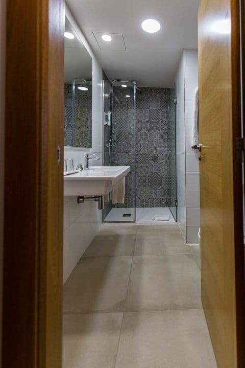 Bad mit Dusche, WC von de rTür verdeckt