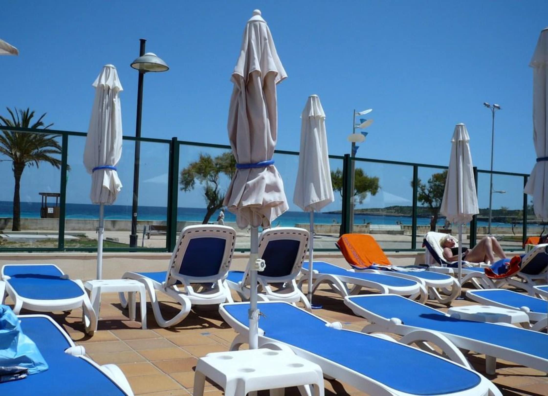 Liegen vom Hotel mit Blick auf das Meer