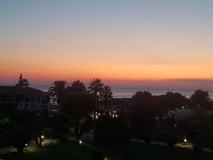 Sonnenaufgang über dem Meer vom Balkon aus.