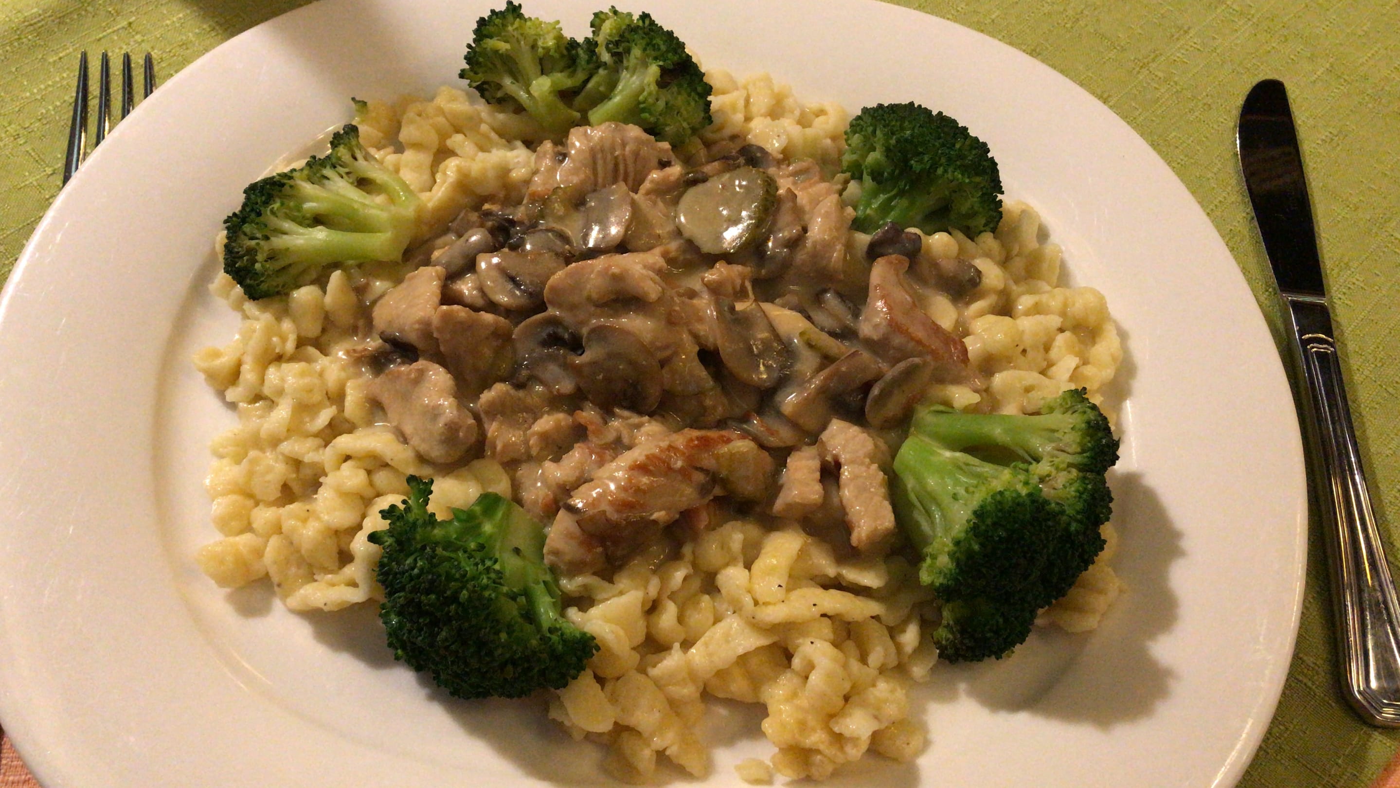 Putengeschnetzeltes mit Spätzle und Broccoli