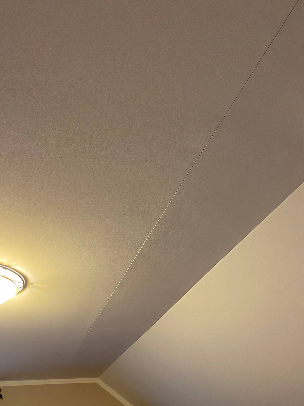 Decke im Zimmer/Suite. Trockenbau nicht beendet. Zumindest ist der Spalt unbearbeitet.