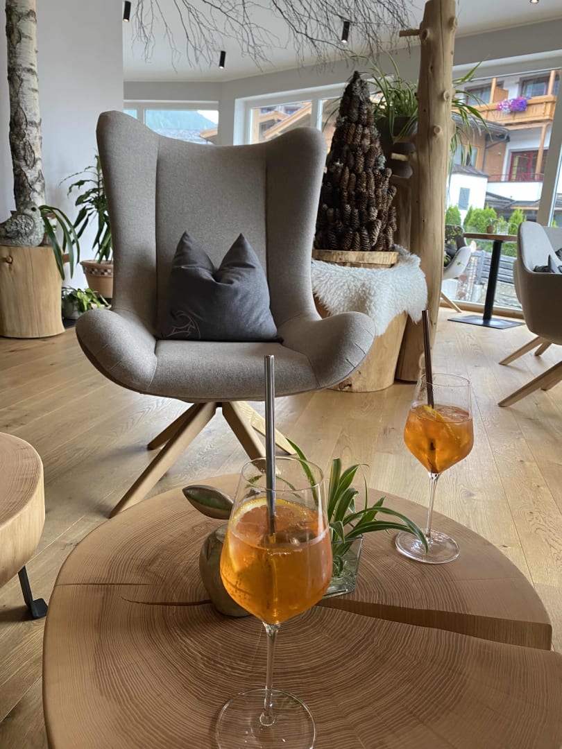 Willkommensdrink im Wintergarten.