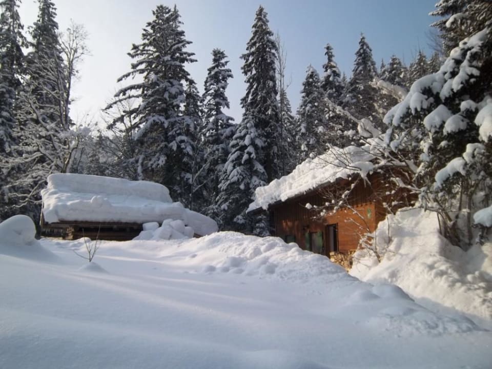 Tief verschneites Almhaus
