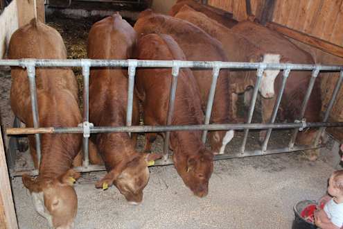 Gehe mit Fabian Kälber füttern