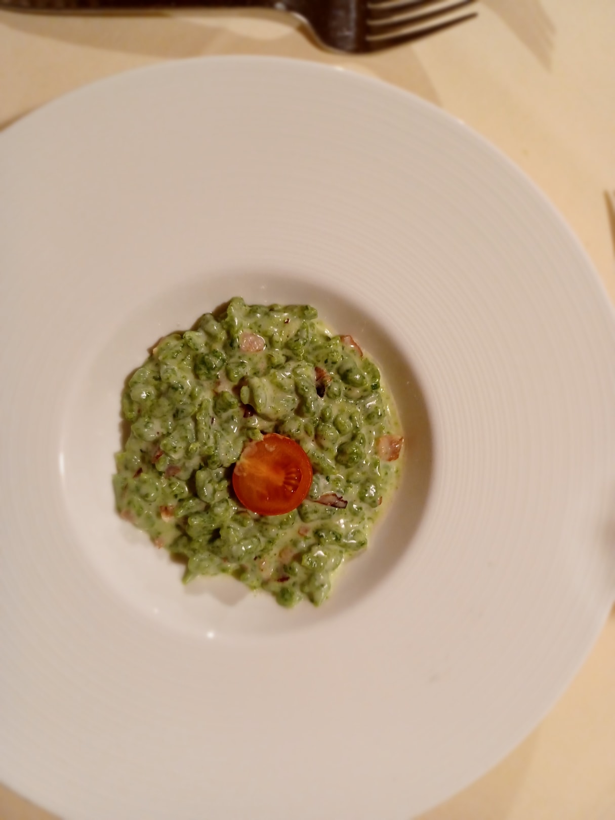 Spinatspätzle mit Sahne-Schinkensoße