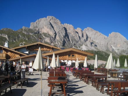 Hotel mit traumhafter BergkulisseMan sieht die große Sonnentrasse, mit dem Bergmassiv der Geisler- Spitzen im Hintergrund.
