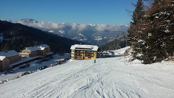 Blick von der Piste aufs Hotel