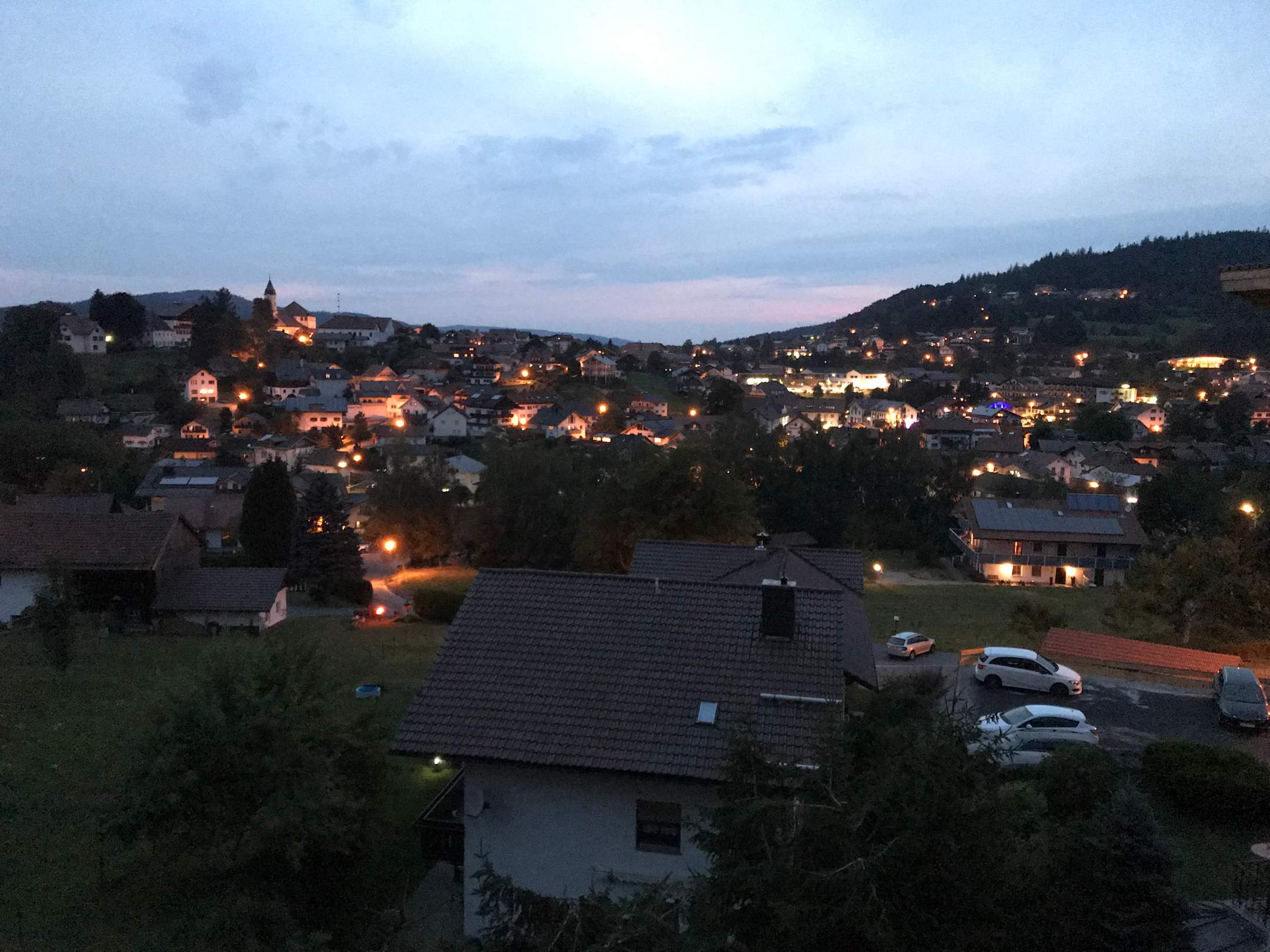 Wunderschöne Aussicht vom Zimmerbalkon über Bodenmais. Hotel liegt auf einem Hang erhöht.