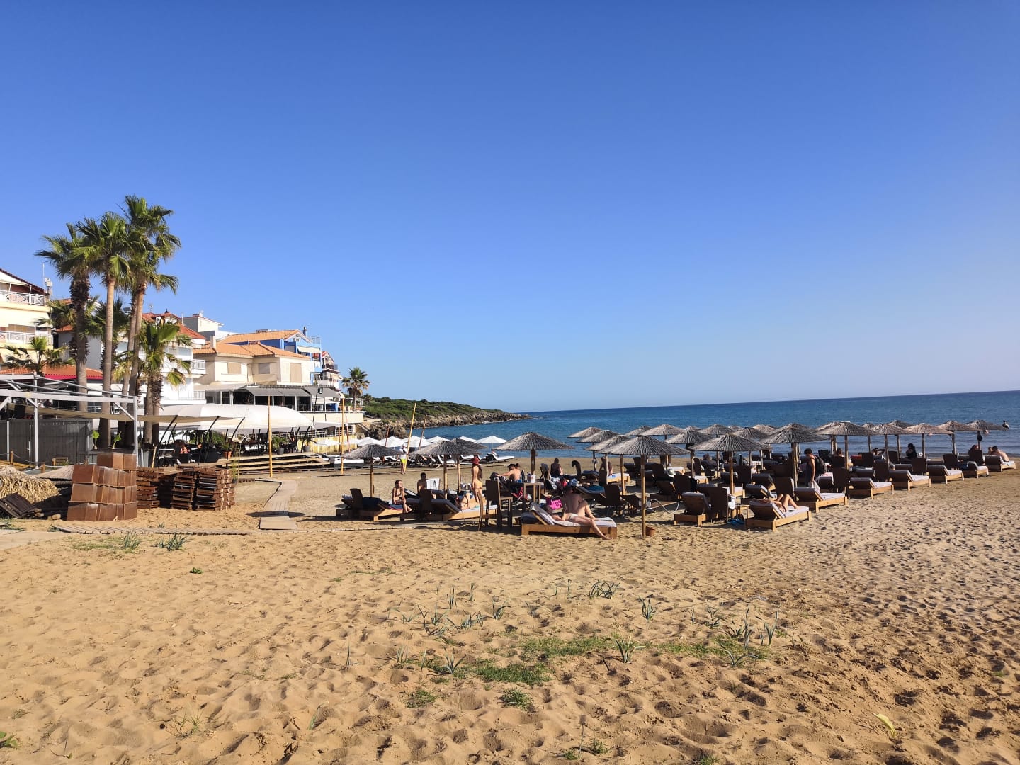 Strandabschnitt des Hotels mit kostenfreien Liegen und Schirmen