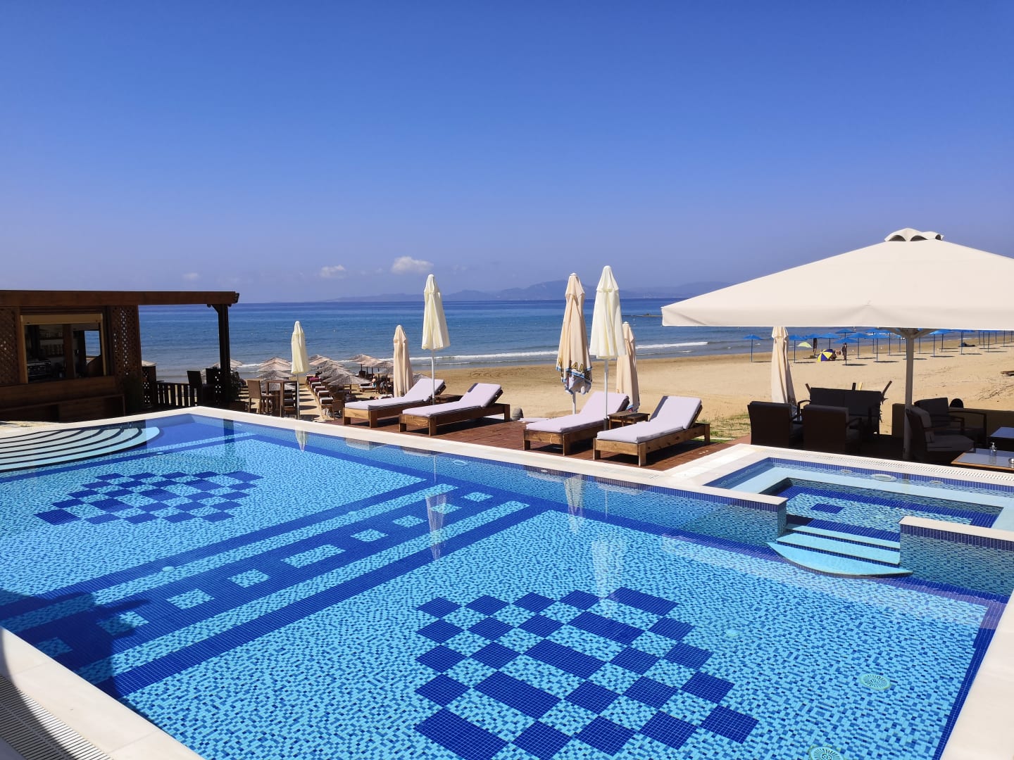 Blick auf Pool und Strand