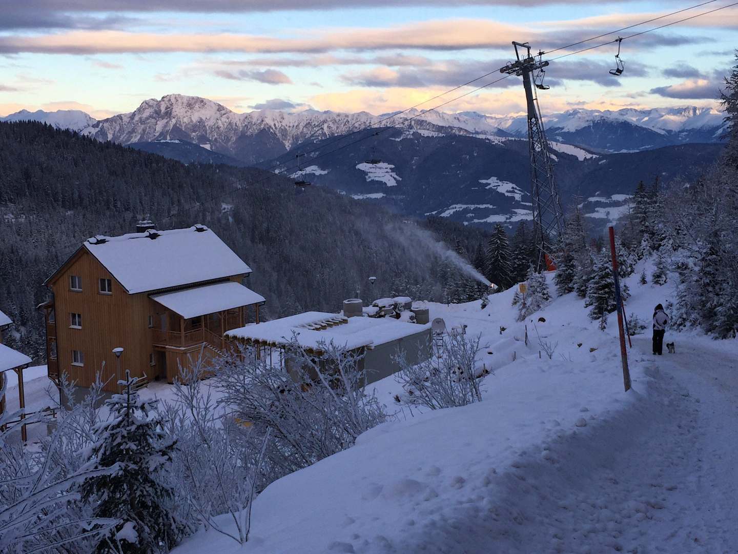 Blick auf ein Apartmenthaus zum Skilift